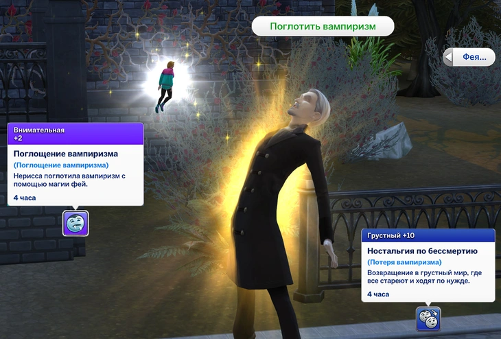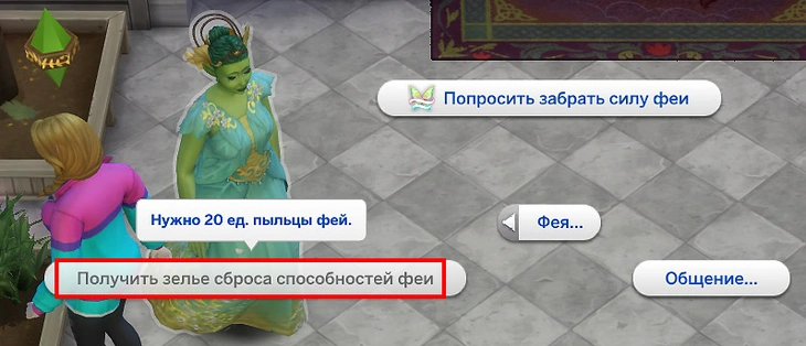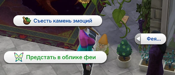 | 4 | Повлиять на отношения | Эмоции | Действие на симах "Повлиять на отношения": позволяет изменить отношения между феей и персонажем |