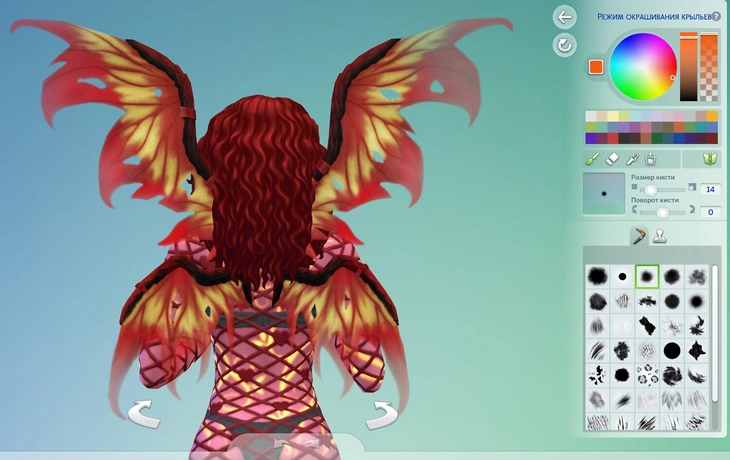 Для крыльев в редакторе создания персонажа доступен режим окрашивания для создания уникальных дизайнов!