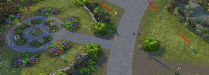 Для завершения сказки вам необходимо разгадать загадки четырёх грибов синего, зелёного, красного и жёлтого цветов. Вы сможете найти два гриба совсем рядом с Чародревом, ещё два будут через дорогу ближе к воде.