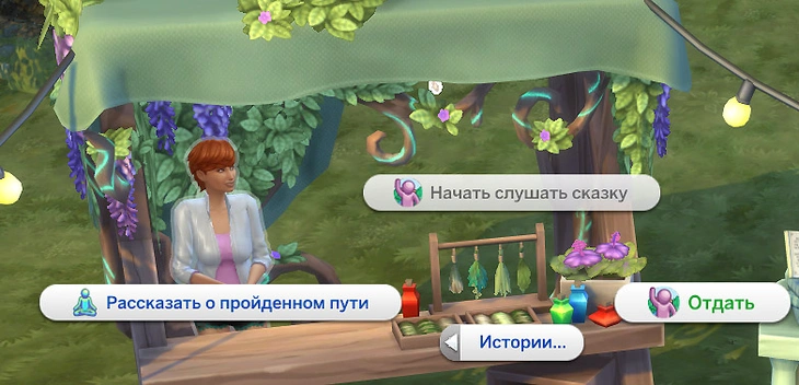 Для прослушивания сказки вам потребуется получить указанный предмет, пожить на природе (поспать или помыться) и пообщаться с другими о природе или об обмене предметами. Содержание этого задания может меняться.