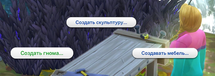 Также вам может быть поручено смастерить гнома. Для этого вам понадобится столярный станок. Нажмите на него и выберите действие "Создать гнома...". В появившемся списке любой понравившийся вариант. Многих гномов можно создать даже с первым уровнем навыка механики.