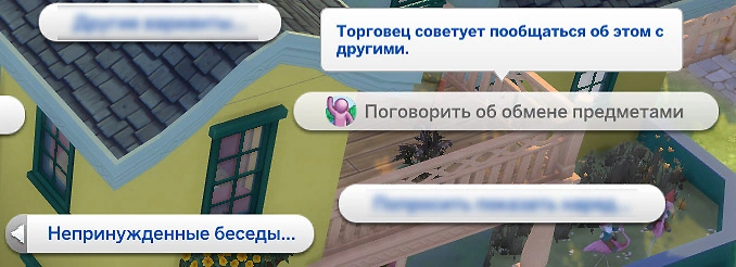 Чтобы поговорить с другими персонажами на любую из заданных тем, вам необходимо будет найти трёх других персонажей и выбрать действие в категории дружелюбных взаимодействий в разделе непринуждённых бесед. С самим Джо Трейдером поговорить нельзя.