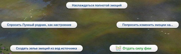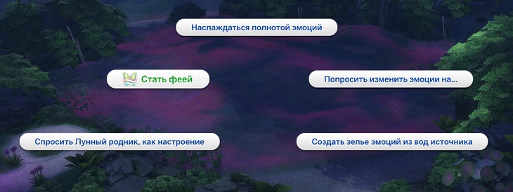 В Вековой чаще есть первородный источник фейских сил — Лунный родник. Поплавав в нём, феи могут восполнить потребность в силе эмоций! Выберите действие на Лунном роднике "Наслаждаться полнотой эмоций", чтобы восстановить силу эмоций!