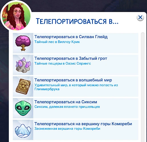 Вы можете телепортироваться с помощью звёздного камня-телепорта в скрытые локации мира The Sims всего за единицу пыльцы фей на одного человека. При телепортации в группе потребуется 2 горстки пыльцы. После прослушивания сказки Кэр Рен "Два упрямца" вы получите такой же камень в своё распоряжение!