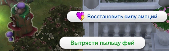 Каждая фея нуждается в эмоциях, чтобы продолжать существовать! Если под рукой не осталось зелий или другого средства для восполнения силы эмоций, то можно воспользоваться пятью горками пыльцы фей, чтобы это сделать. Нажмите на персонажа, перейдите в категорию "Фея..." и выберите действие "Восстановить силу эмоций".