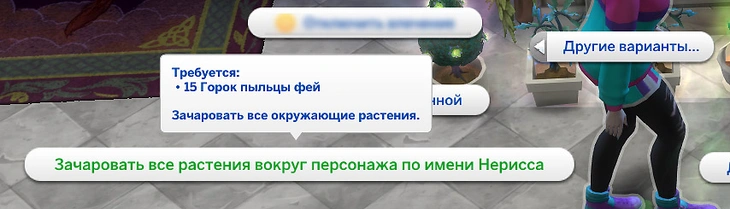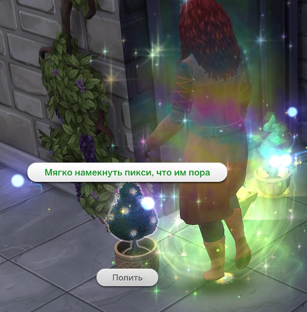 Будьте осторожны! Зачарованные растения привлекают пикси, которые не дают взаимодействовать с растением, пока вы их не выгоните. Феи могут прогнать их с помощью действия "Мягко намекнуть пикси, что им пора". После этого у них может слегка ухудшиться удача.