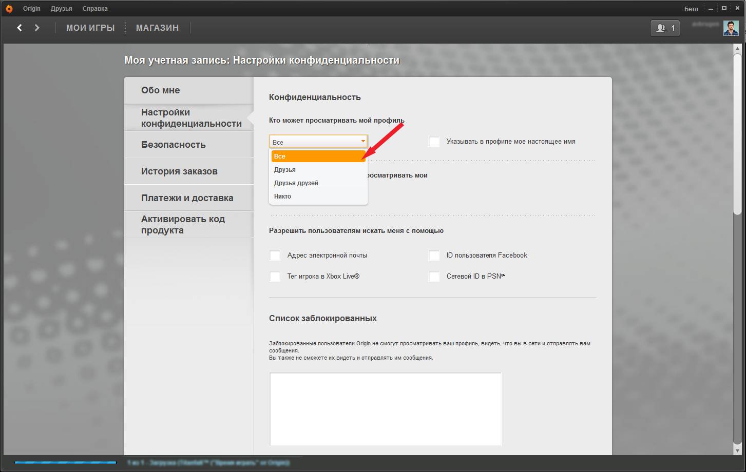 Итак, чтобы включить возможность комментирования вашего профиля, в клиенте Origin перейдите в раздел «Настройки конфиденциальности» и под настройкой «Кто может просматривать мой профиль» выберите «Все». Если же вы хотите наоборот отключить возможность комментирования профиля, то выберите любой из других вариантов настройки. У вас также есть возможность удалять и пожаловаться на оставленные комментарии в вашем профиле.