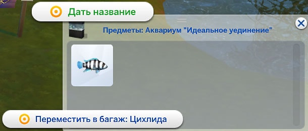 В открытом багаже аквариума нажмите на рыбу и выберите действие "Дать название".