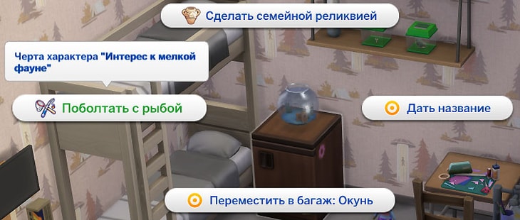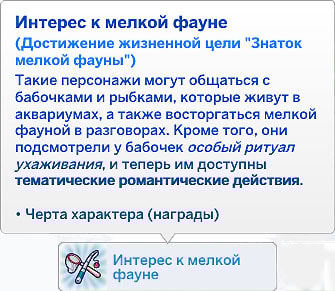 За выполнение жизненной цели персонаж получит наградную черту характера "Интерес к мелкой фауне". Это позволит им общаться с бабочками и рыбами в аквариуме!