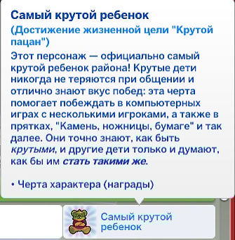 За выполнение жизненной цели персонаж получит наградную черту характера "Самый крутой на районе". Такие персонажи чаще одерживают победу в соревновательных играх.