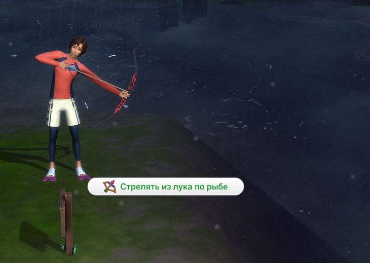 Чтобы поймать рыбу с помощью лука и стрел, вам потребуется 4 уровень навыка стрельбы из лука. Нажмите на водоём или знак "Рыбная ловля разрешена" и выберите действие "Стрелять из лука по рыбе". Имейте в виду, что при наличии дополнения «Времена года» вы не сможете ловить рыбу в водоёмах, покрытых льдом.