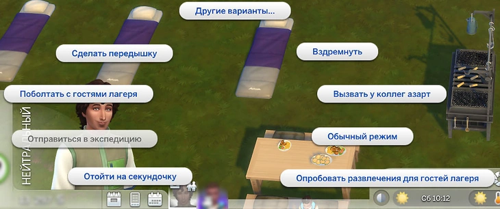 Несмотря на то, что это закрытая карьера, вам придётся активно управлять действиями персонажа на работе, соблюдая баланс между работой и восполнением потребностей! Если нажать на работающего сима, вы увидите большое количество доступных взаимодействий, которые будут меняться в зависимости от времени суток.