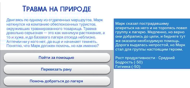 В ходе работы вам будут попадаться карточки шанса. В зависимости от выбора и случайности вам может попасться различный исход события.