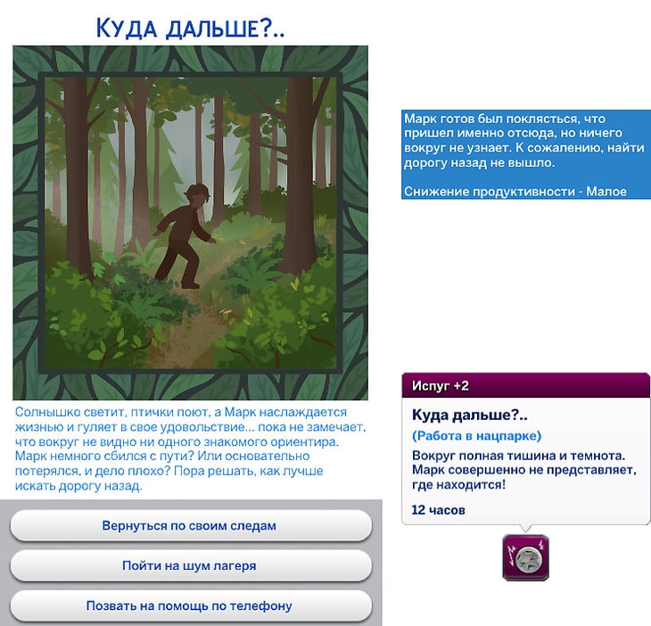 - Изучать истории о нацпарке — снижает досуг и бодрость, необходимо для повышения по специализации "Лесник";
