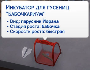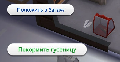 Через какое-то время из куколки появится бабочка. Чтобы поместить её в багаж, нажмите на инкубатор и выберите действие "Забрать бабочку или мотылька".