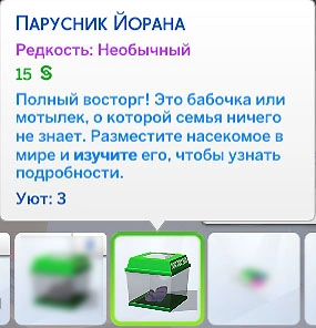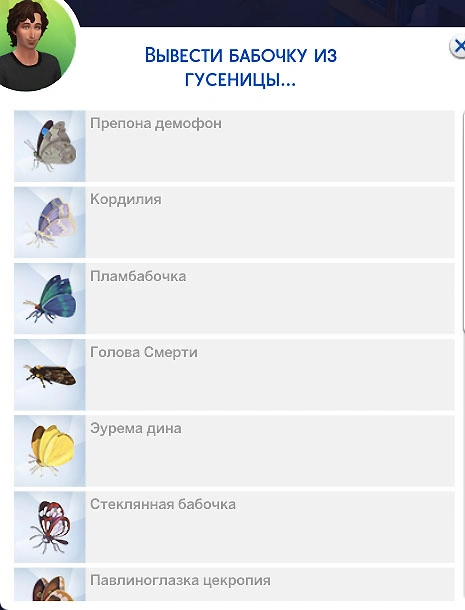 | 3 | Выводить обычных бабочек: препона демофон, кордилия, эурема дина, стеклянная бабочка, павлиноглазка цекропия, парусник Ричмонда. Шанс получить необычный вид из неизвестных гусениц |