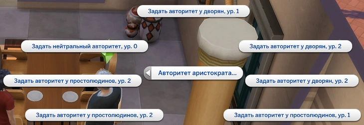 Вариант "Авторитет аристократа" позволяет изменить уровень влияния у дворян, простолюдинов или задать нейтральный авторитет.