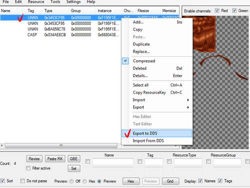 2. Запустите S4PE и откройте в нём только что сохраненный .package файл из Color Magic. Вы увидите в окне программы еще 4 файла. Для создания ретекстуры нам потребуется только первый. Щелкните на нём правой кнопкой мыши на выберите «Export to DDS», сохраняем полученный файл. Переходим в Photoshop.