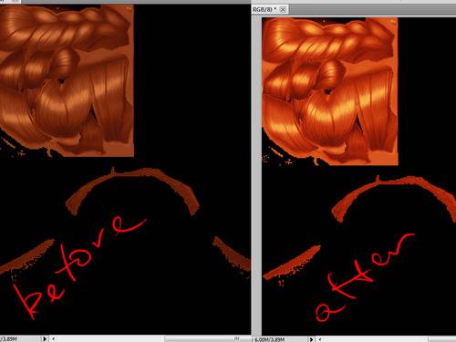3. Не забудьте установить DDS плагин! Откройте файл прически, который мы экспортировали из S4PE (в формате .dds), в Photoshop вы увидите её текстуру.  Теперь вы можете делать с ней всё, что заблагорассудиться (но результат не гарантирован). Я изменял яркость и контрастность, чтобы текстура стала более интенсивной. Теперь сделайте нужные для вас изменения, для этого вам нужны хотя бы базовые знания Adobe Photoshop.