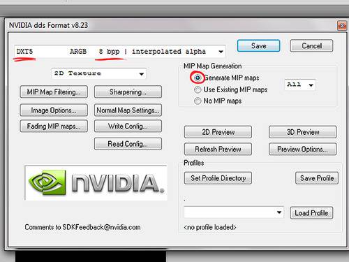 После проделанных изменений осталось лишь сохранить текстуру. Для этого в Photoshop выберите «Файл > Сохранить как...» и выберите тип файла - D3D/DDS. После появится окно. В нём установите настройки как ниже на скриншоте: