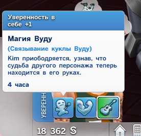 У персонажей с малым уровнем навыка «Пакости» может не получиться с первого раза привязать куклу к персонажу, но вы можете быть настойчивым и попробовать еще раз. Если всё пройдет удачно - вы получите соответствующее уведомление, а также мудлет «Магия Вуду», которая сделает вашего персонажа уверенным.
