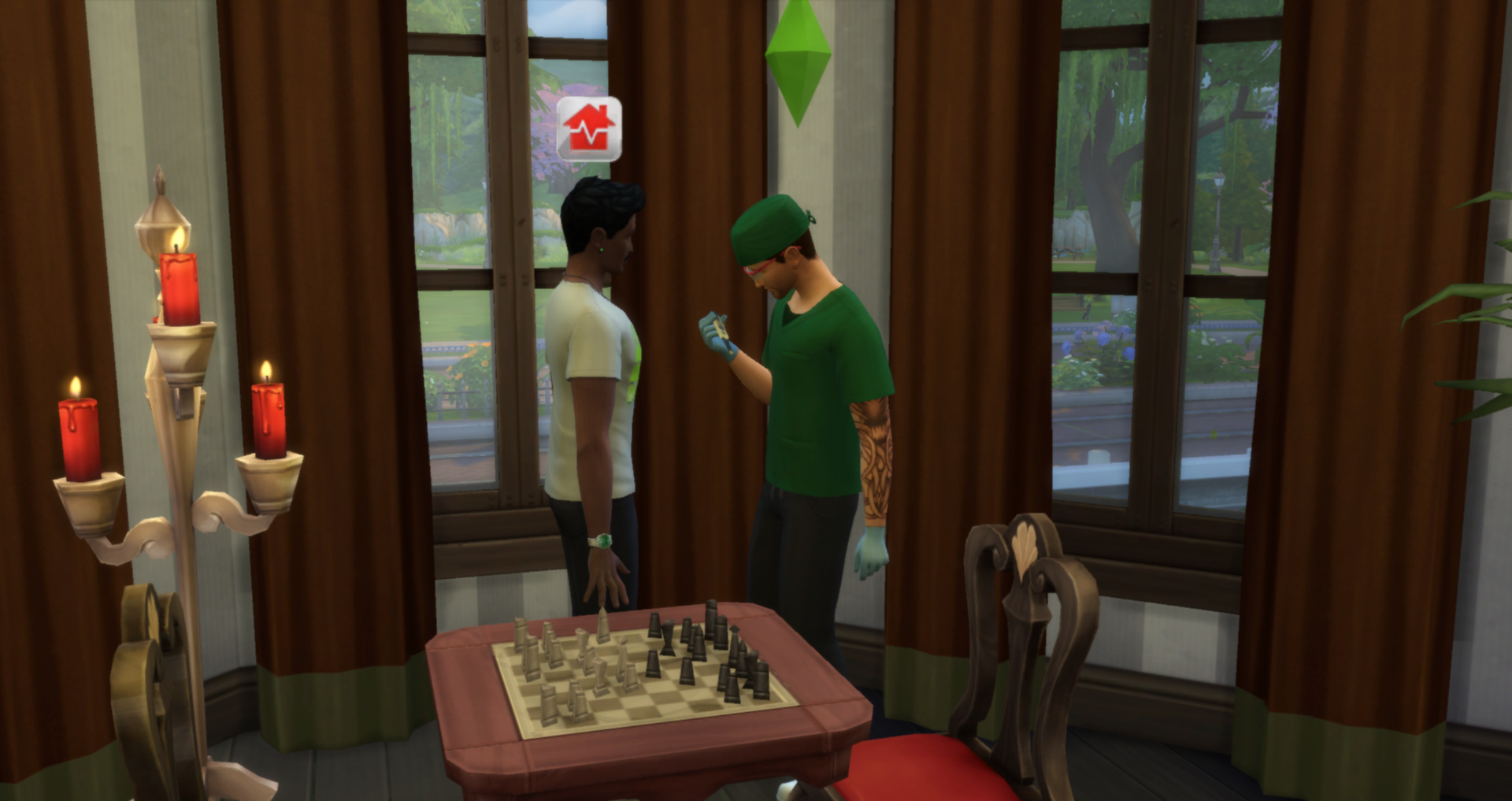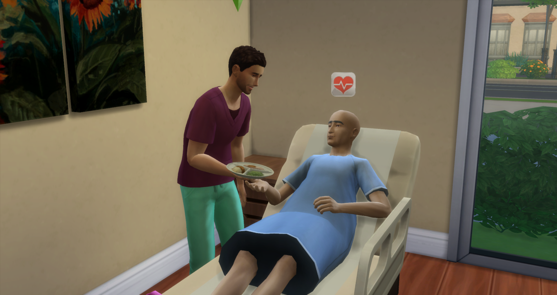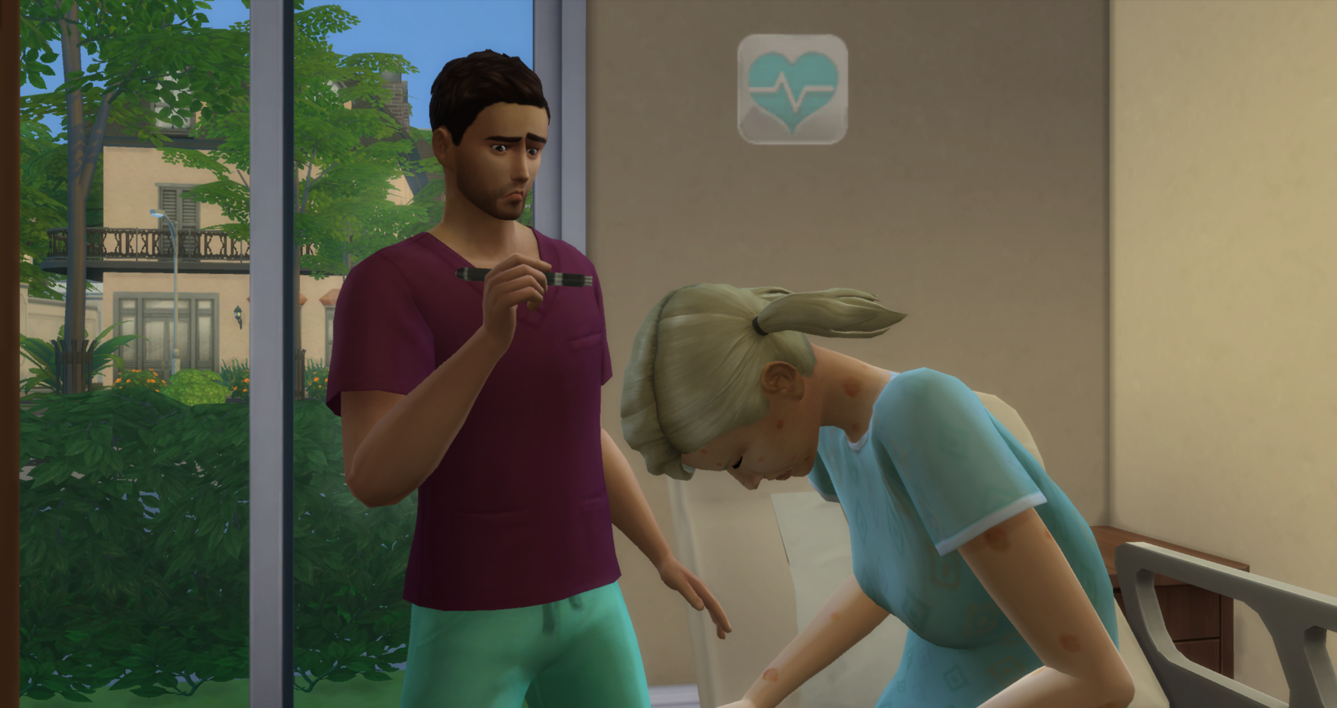В больницу я прибыл в качестве зеленого интерна и, ознакомившись со списком заданий, понял, что героически спасть чью-нибудь жизнь в ближайшее время не получится. Первый день моей работы на благо всем целиком состоял лишь из общения с симпатичными медсестрами, обеденных перерывов, ухаживания за больными, и поиска в интернете статей по медицине. Еще мой сим периодически вытирал несуществующие лужи, прогрессивная медицина в действии. Ухаживая за больными, я обнаружил опцию «Лечить пациента». Я не был уверен. Стоит ли это делать, ведь я всё-таки был неопытным интерном, но моя любопытная натура превозмогла все опаски, и я сделал укол одному из пациентов. Внезапно, оказалось, что я все сделал правильно, и мой больной полностью поправился! Это был мой первый пациент, которого я буквально вырвал из цепких лап болезни!