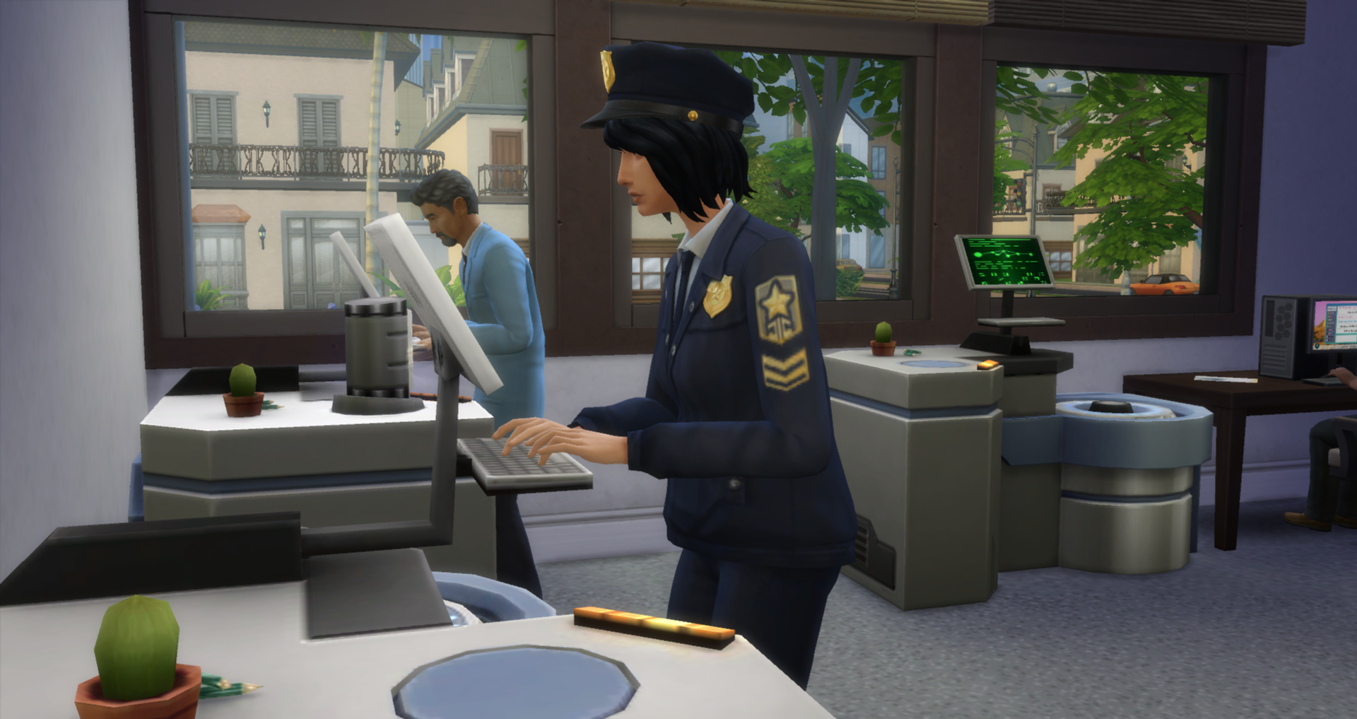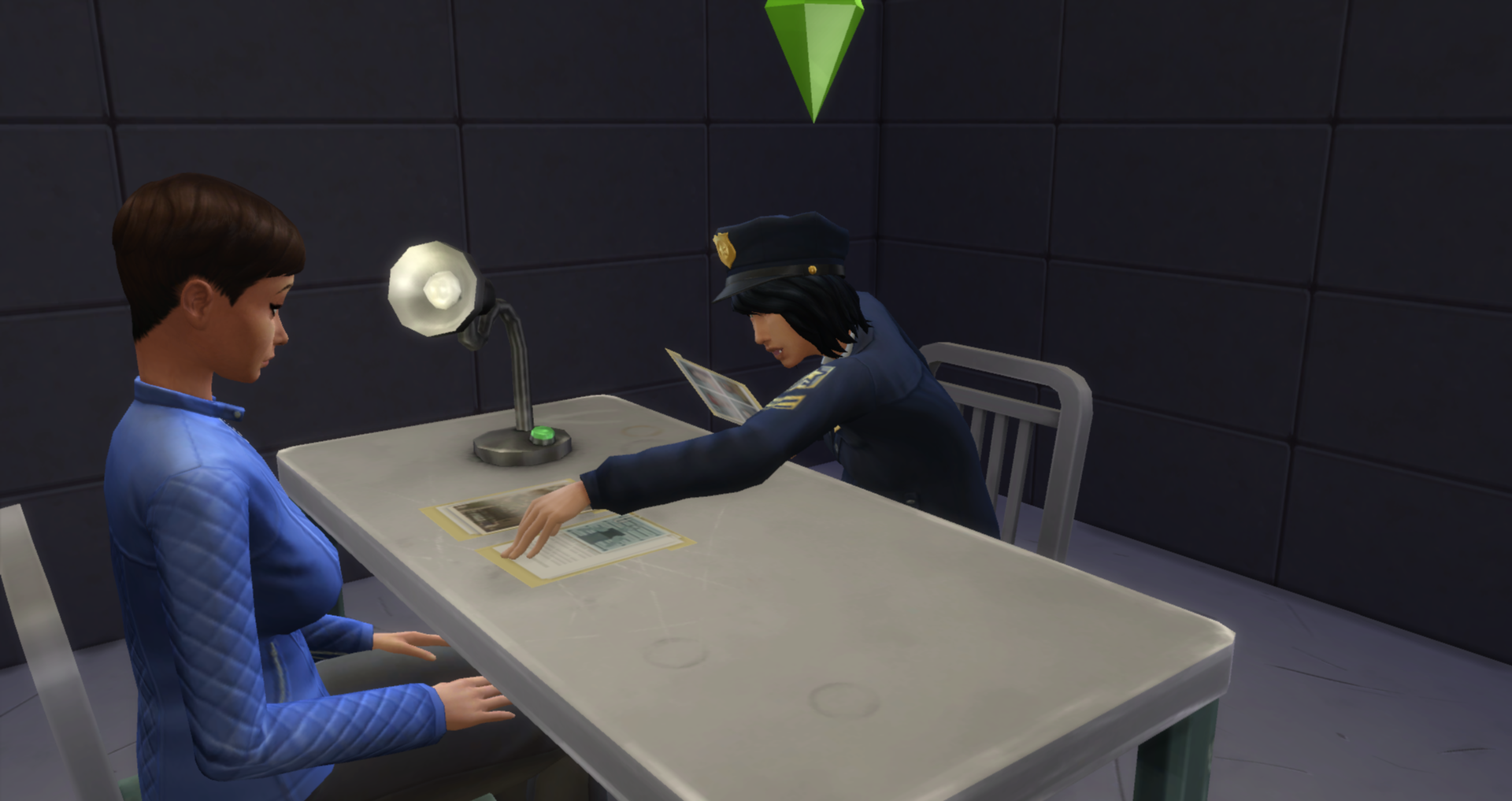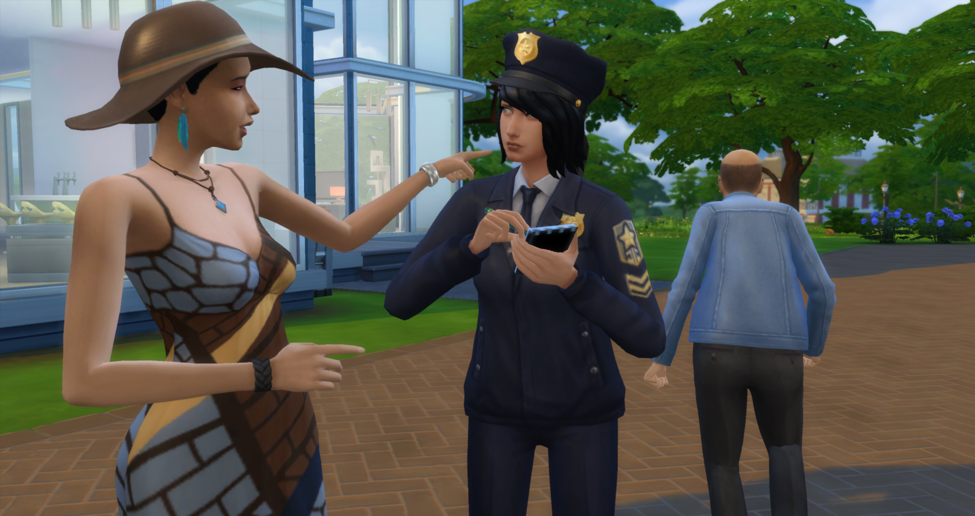Второй день моей полицейской практики принес мне работу патрульным. В список заданий, кроме, непосредственно, патрулирования, было произведение впечатления на гражданских симов. Для этого я просто остановил прогуливающегося мимо сима (Именем закона, поболтайте со мной!) и немного с ним пообщался. Через некоторое время, проходящий мимо сим ВНЕЗАПНО набросился на моего персонажа и устроил драку, вот такой вот общественный произвол. Мой сим, доблестный офицер полиции в сияющих доспехах драку… Проиграл. Да, простому прохожему (во всем виноваты пончики). Так или иначе, я все равно выписал ему штраф (Чтоб знал). Тут моё патрулирование подошло к концу и я отправился в участок.