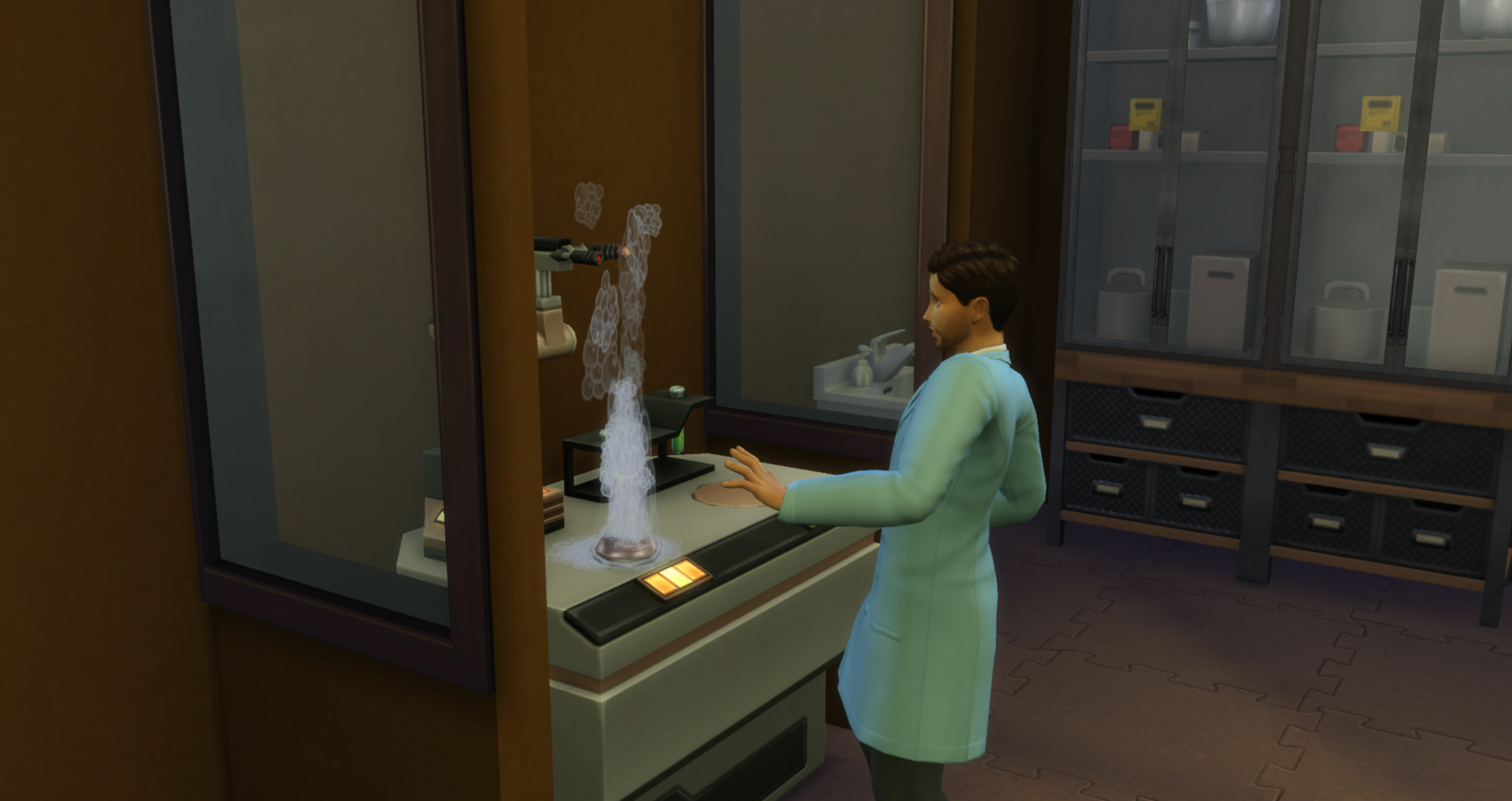 Первым изобретением моего сима была абсолютно бесполезная модель, а вот вторым оказался рентгеносим, который мы могли заметить еще до выхода дополнения, на скриншотах. Этим забавным, на вид, инструментом мой сим вполне успешно замораживал окружающих его людей. Стоит заметить, что для создания изобретенных вами вещей вам понадобятся кристаллы и металл, для создания же сывороток стоит запастись разными растениями. Растения вы можете найти у соседей или вырастить, кристаллы и металл можно взять взаймы у коллег-учёных.