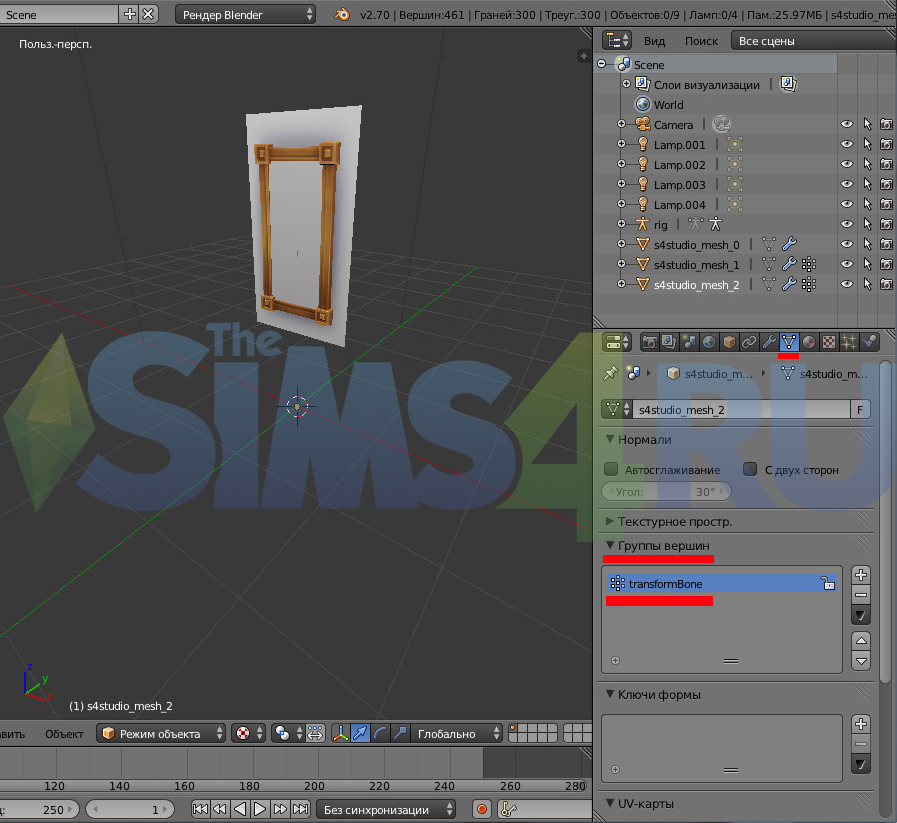 Это же нужно проделать для всех мешей. В данном случае в зеркале их три и у каждого будут свои значения.