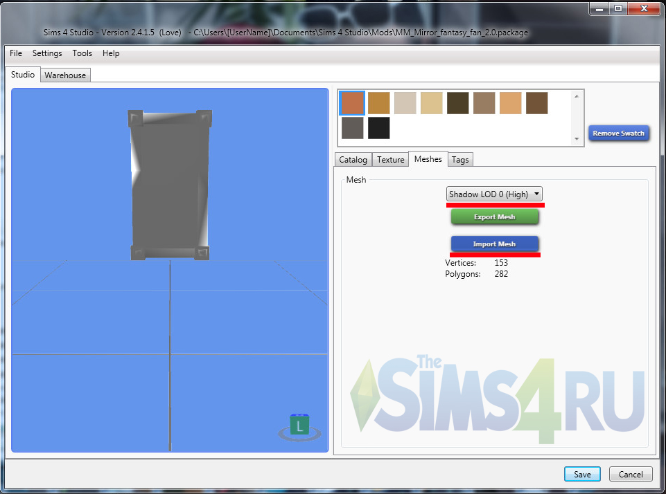 12. Возвращаемся в студию. Импортируем наш только что сохраненный файл блендера в «LOD 0 (High)».