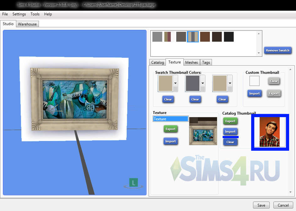 Это руководство научит вас пользоваться функцией подбора цвета Sims 4 Studio, чтобы перенести цвета с добавленного предмета на его миниатюру. Это не научит вас делать предметы, а лишь покажет, как создавать их миниатюры. Несмотря на то, что в руководстве мы будем использовать картину, как пример, вы можете проделывать подобные фокусы с CAS’ом, стенами и даже полом.