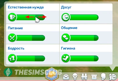 - Левой кнопкой мыши можно перетаскивать уровень потребностей.