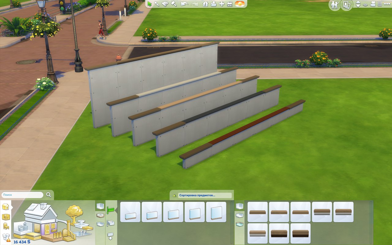 Чтобы найти перегородки, выберите "Стены и пустые комнаты" в режиме строительства, и нажмите на иконку перегородок. Там вам будут предложены 5 вариантов высоты и 8 вариантов отделок перегородок, которые идут в разных цветах. На них также есть слоты для размещения мелких предметов.