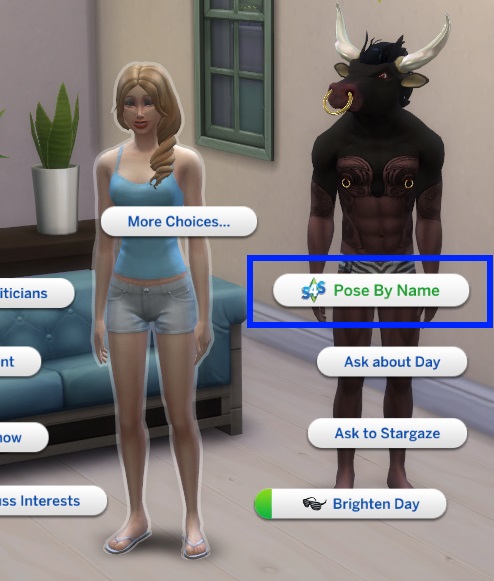 Мод добавляет в игру опцию под названием «Pose By Name», которая появляется по нажатию на вашего сима. Когда вы нажимаете на кнопку «Pose By Name», вам предложат ввести название анимации (Файл со всеми названиями можно скачать тут) после чего ваш сим начнет ее выполнять, пока вы не отмените действие. Вы можете использовать эту кнопку на любых симах, даже на тех, что не являются частью вашей семьи. Чтобы остановить позирование сима просто щелкните на него и выберите опцию отмены позы.