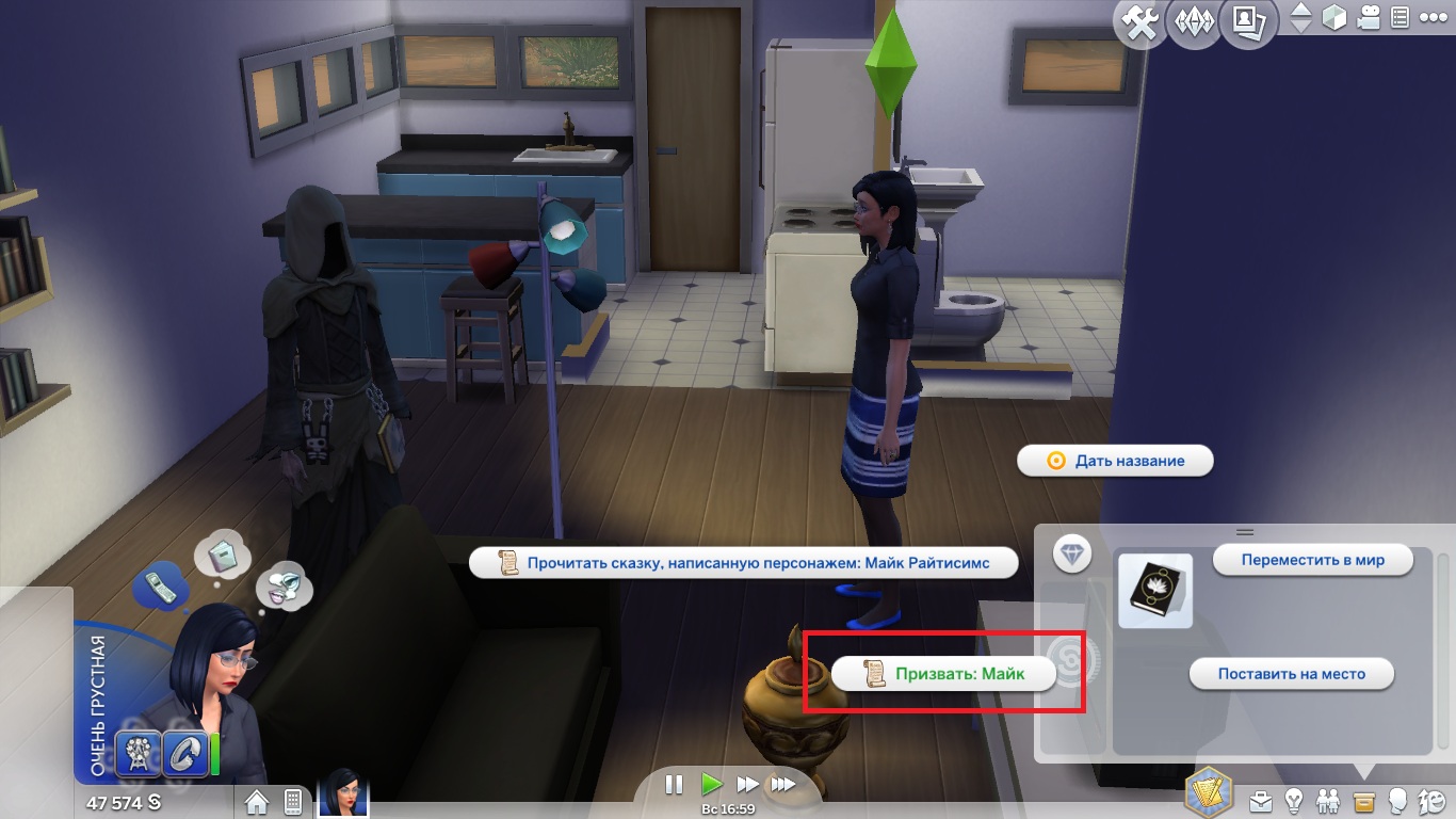 - Спросить про смерть - Действие общения, которое может выполнить сим только с призраком.