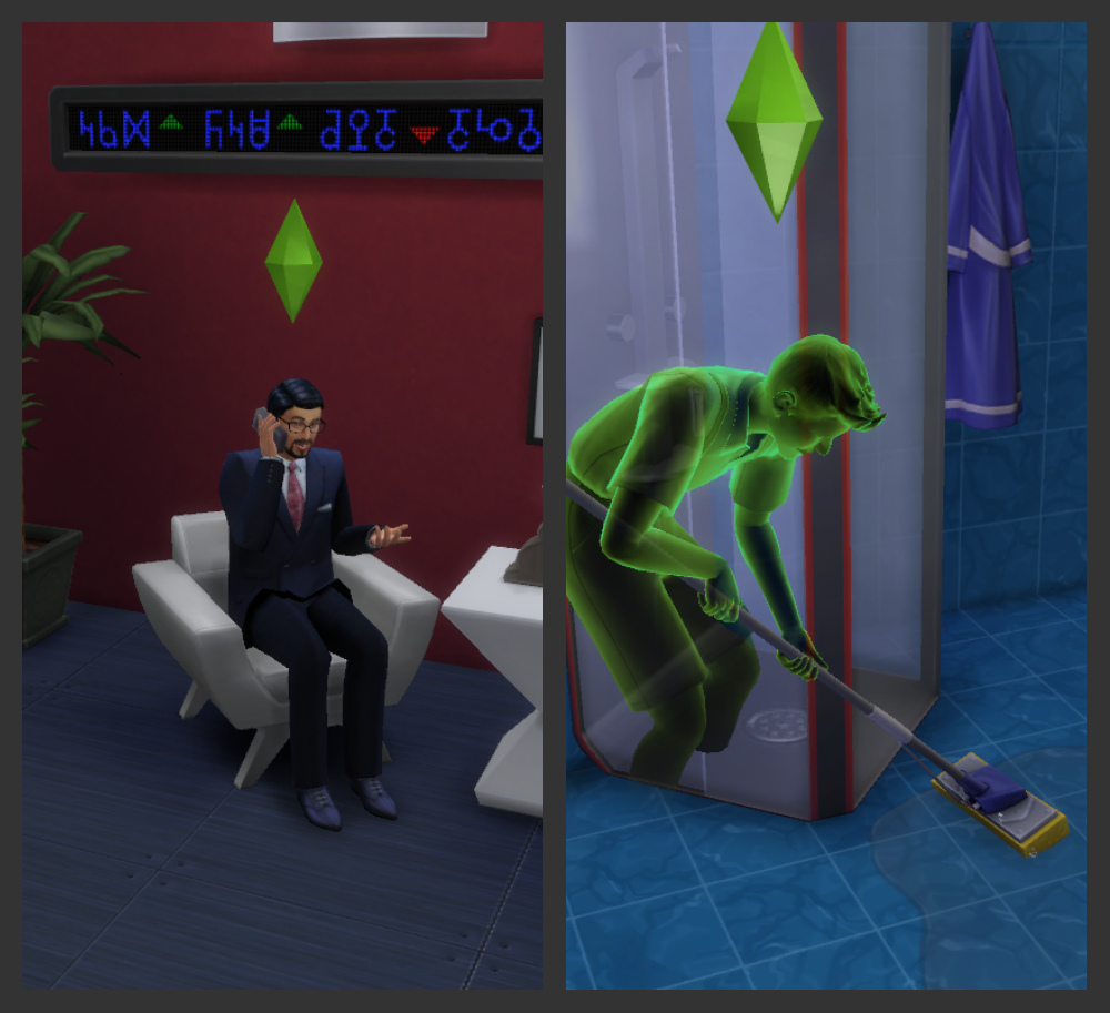 Или наоборот призраки могут выполнять всю работу по дому, пока симы продвигаются по карьерной лестнице.