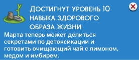 Десятый, последний, уровень навыка даёт нам новое действие в общении: «делиться секретами детоксикации» и новый рецепт очищающего чая с лимоном, медом и имбирем: