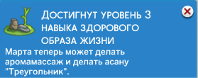 Ну вот и весь навык, теперь вашему симу будет о чём поговорить с друзьями на занятиях по йоге, он будет с удовольствием посещать спортивные залы и делать спа-процедуры в спа-центрах, которые вы сами можете поставить у себя в городе. Тело персонажа всегда будет в форме, только не забывайте упражняться.
