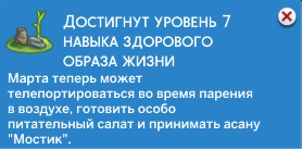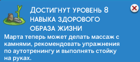 После нескольких упражнений или чтения 1 тома книги, сим должен повысить свои знания до второго уровня навыка «Здорового образа жизни».