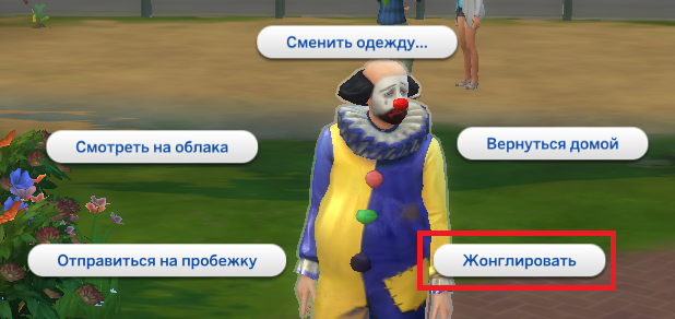 И у нас добавляется новое действие! Нажав на сима видим интересное действие "Жонглировать"