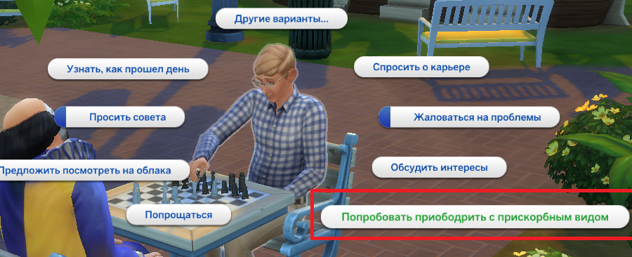 Есть и новое действие общения "Попробовать приободрить с прискорбным видом"
