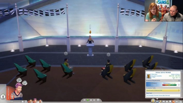 - Включает в себя новый подиум для произношения речей. Любой сим может делать это;