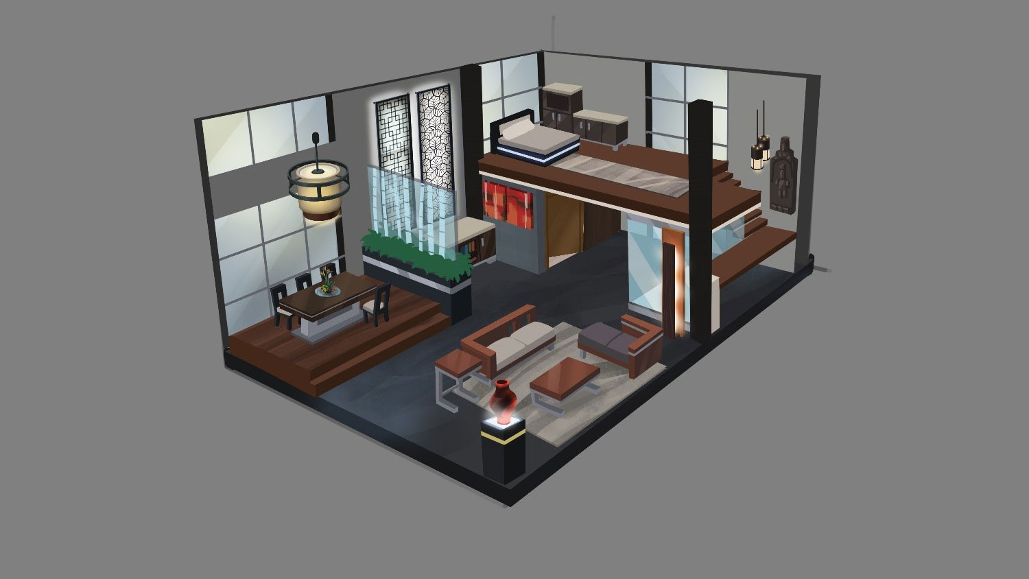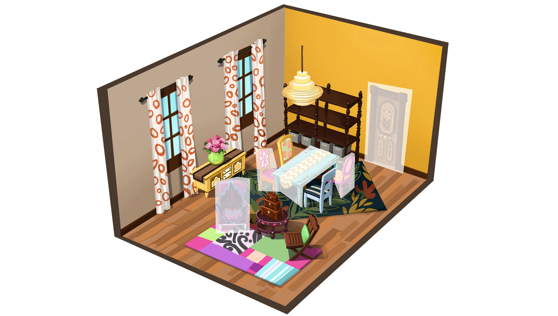 Разобравшись с базовыми элементами, мы все еще должны были хорошо все настроить. Изначально у квартир не было потолков, скрывающих квартиры соседей, которые выглядели как пустое пространство. Нашему арт-директору это очень не нравилось, и он практически заставил нас разобраться с этой проблемой. Что заняло некоторое время.