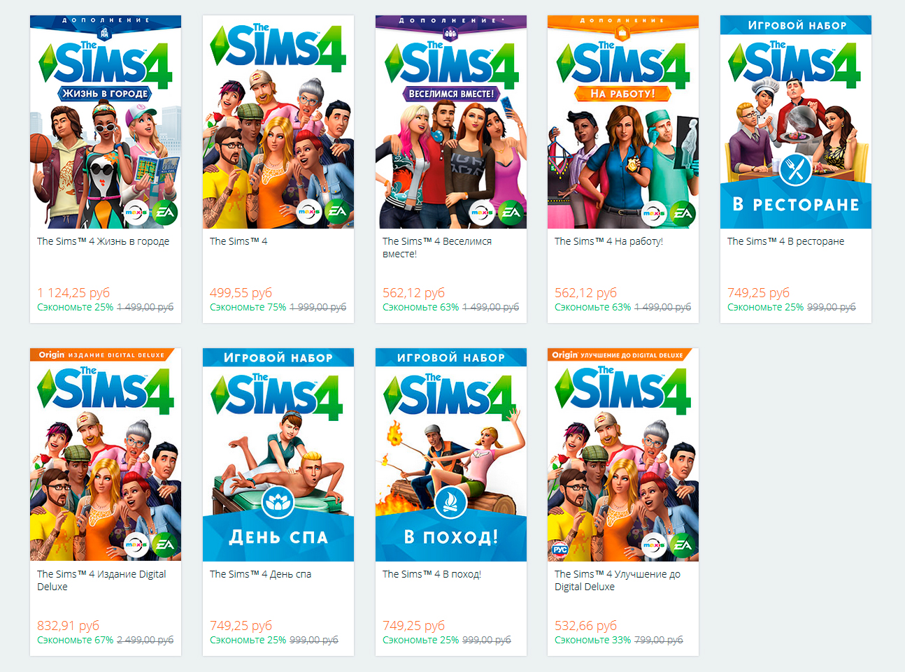 В честь «Черной пятницы» в Origin началась распродажа со скидками от 25% до 75% на The Sims 4, а также на игровые наборы и дополнения к ней. В том числе и на новое дополнение «Жизнь в городе». Все продукты, участвующие в распродаже вы можете увидеть на скриншоте ниже.