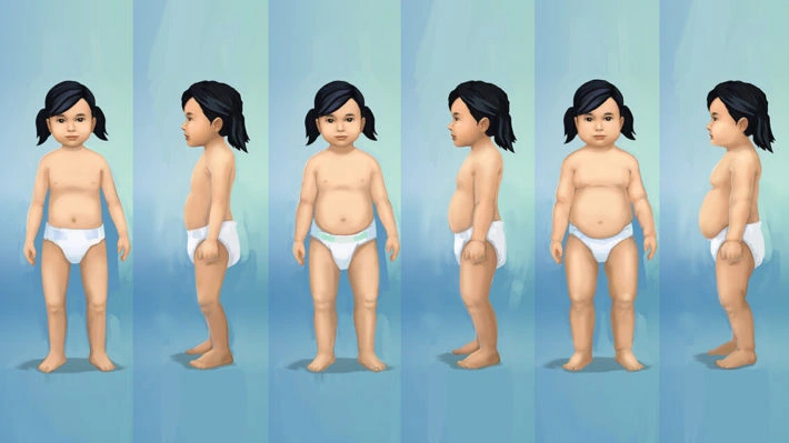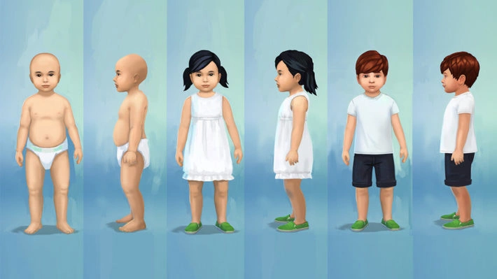 Художественный стиль в The Sims 4 отличается от стиля предыдущих игр, поэтому нам пришлось подогнать малышей под текущий художественный стиль и слегка изменить пропорции, чтобы сделать их немного старше, чем в более ранних играх.