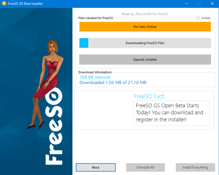 Далее начнется установка. Если у вас вдруг уже установлена The Sims Online, то вам останется дождаться загрузки и установки только файлов FreeSO и OpenAL.