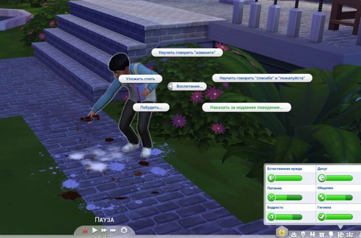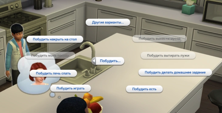 | 1 | Ваш персонаж теперь может поощрять хорошее поведение и просить детей прибраться. Он также может отчитывать ребенка за плохое поведение, просить его больше так не делать, или просто накричать, чтобы он перестал. |
