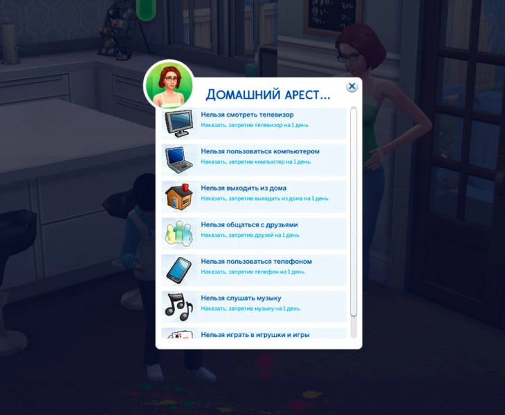 | 5 | Ваш персонаж теперь может отправлять непослушных детей под домашний арест. Или просто обсудить плохое поведение, обнять и простить. Также у вас есть больше способов помочь ребенку с его потребностями. |