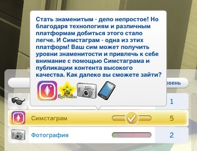 - Навык Симстаграма (5 уровней);