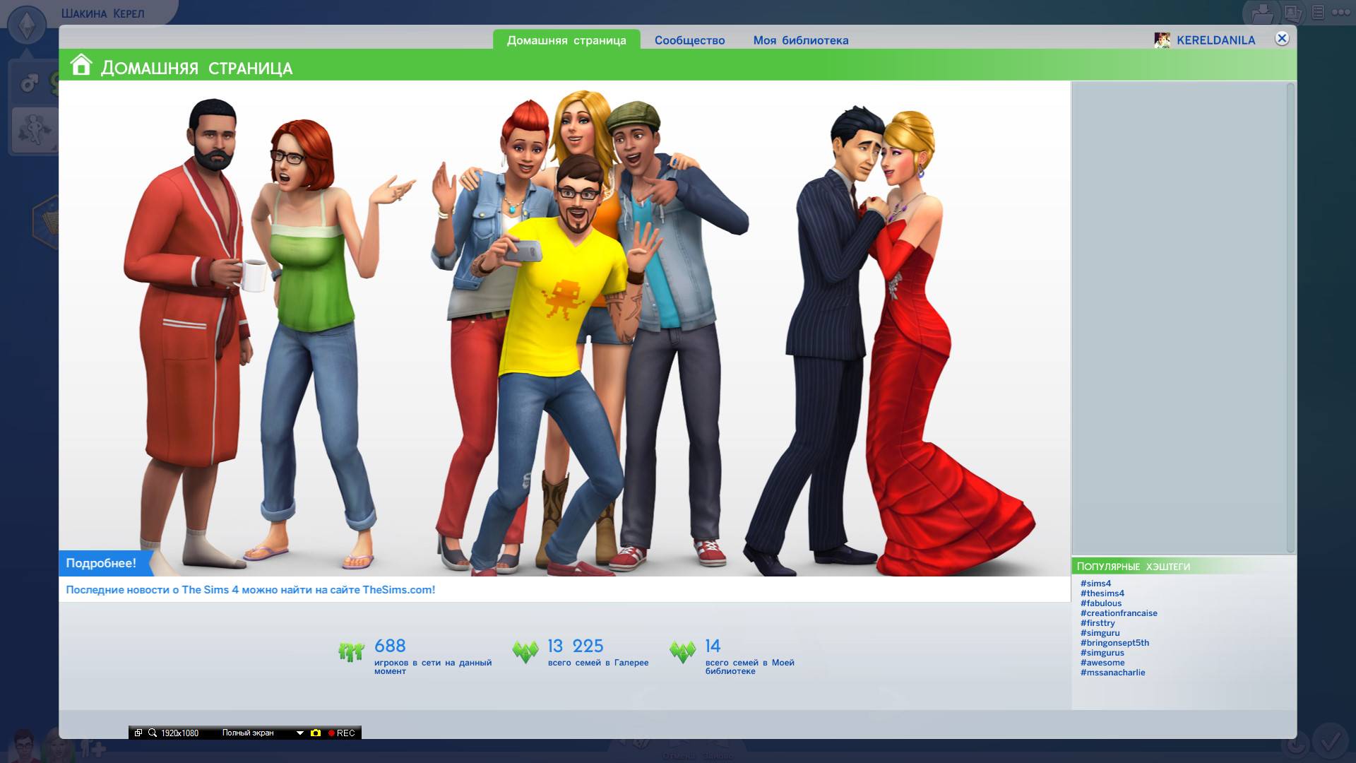 Домашняя страница достаточна информативна, например от туда можно узнать сколько было загружено семей в галерею, сколько игроков в игре и и сколько семей в вашей библиотеке (о ней позже):
